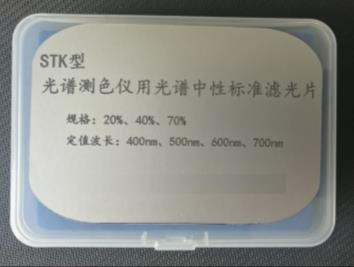 STK光譜測色儀用光譜中性標(biāo)準(zhǔn)濾光片 符合JJG687-1994光譜測色儀國家計量檢定規(guī)程要求,可以作為計量技術(shù)機(jī)構(gòu)按照規(guī)程第 17款要求,用于光譜透射比總不確定度與重復(fù)性檢定校準(zhǔn)用的計量標(biāo)準(zhǔn)器 外形尺寸:12.7x12.7x57(mm), 透射比標(biāo)稱值:20%、40%、70%, 定值波長:400.0nm、500.0nm、600.0nm、700.0nm, 透射比相對不確定度:0.5% |
