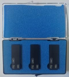 1、FTKJ可見近紅外透射比標準濾光片 按照 JJG178-2007 檢定紫外、可見、近紅外分光光度計的可見及近紅外光譜區(qū)的透射比示值誤差與重復性。 外形尺寸:12.7×12.7×57(mm), 透射比標稱值:10%、20%、30%, 定值波長:440.0nm、546.0nm、635.0nm、1500.0nm、2000.0nm, 透射比相對不確定度:0.7% 成套性:3片/套